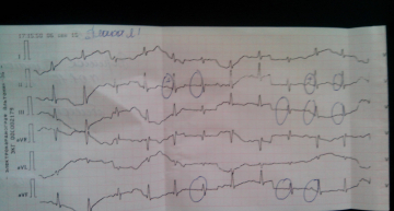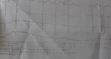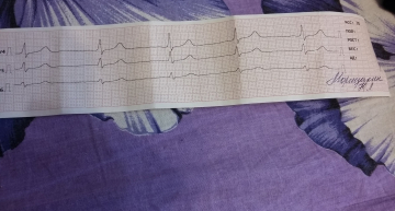 ЭКГ делала реанимация (по вызову). Долго не могли поймать экстрасистолу.