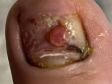 Пару дней назад начал болеть. Сказали удалять ноготь нужно. Я пошла к подологу, оказалась под ногтем было куча гноя. Она все удалила. Но помимо прочего там обнаружился шарик - подолог сказала что это доброкачественное образование и ничего не делать, должно отвалится, но я сомневаюсь. Мне не нравится вид этот.