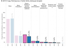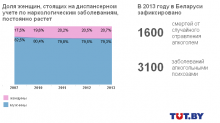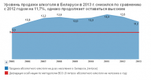 Белорусы - самая пьющая нация в мире. Такие данные опубликованы в последнем докладе ВОЗ. И хотя выводы сделаны по информации за 2008-2010 годы, а граждане стали пить с того времени чуть меньше, радоваться еще рано. Вот уже десять лет нация находится за так называемой чертой деградации (по количеству абсолютного алкоголя на человека), а излюбленными напитками граждан остаются пиво, плодовые вина и водка. Как изменилось потребление алкоголя за последний год и как обстоят дела с лечением от зависимости – в инфографике СМИ.